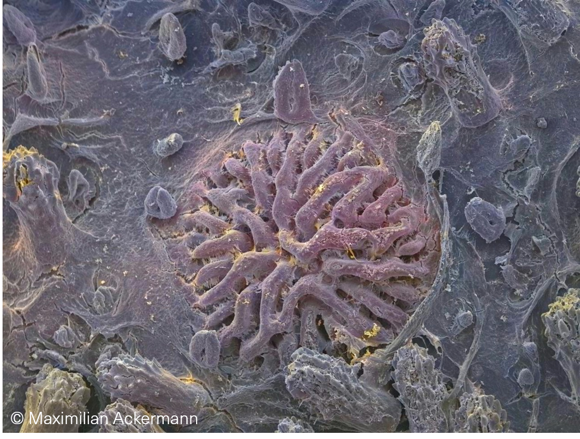 Coloured scanning electron micrograph of an ampulla of a sea star.